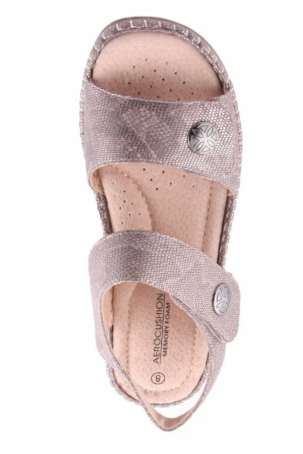 Montreal by Aero Cushion is a women’s sandal featuring two adjustable velcro straps over the foot and comfy leather lined padded insole.