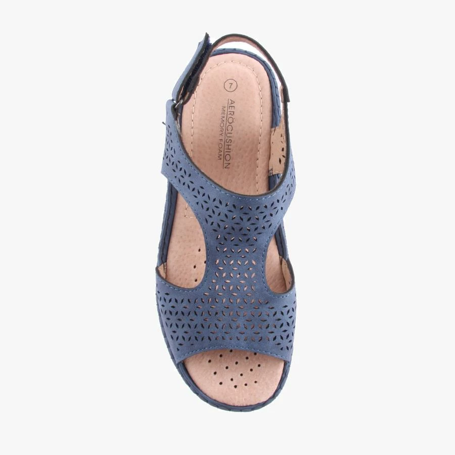 Mellin by Aero Cushion is a women’s wedge sandal featuring a laser cut upper with a velcro strap closure and a comfy padded leather lined insole.