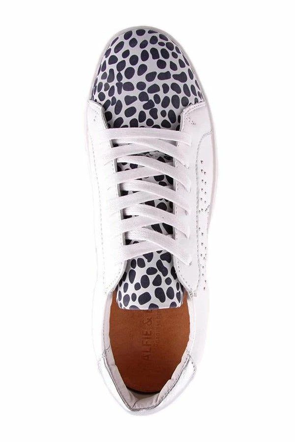 Vovo by Alfie And Evie is a women’s edgy lace up sneaker featuring a star stud trim, gold metallic heel and animal print front insert.