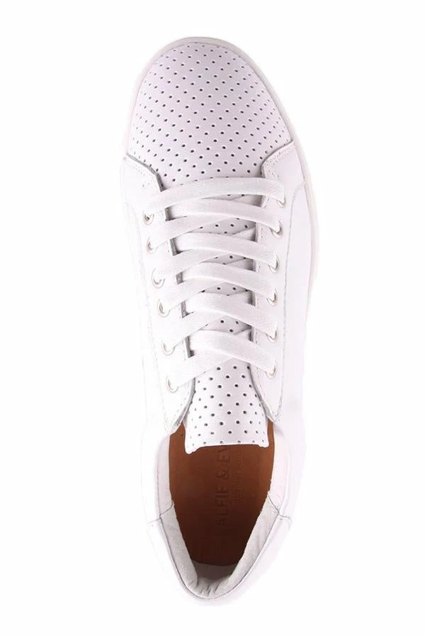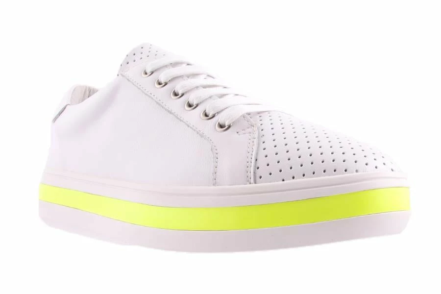 Paradise by Alfie And Evie is a simple women’s lace up sneaker featuring a perforated centre panel, platform sole and silver eyelets and pop of neon on the sole.