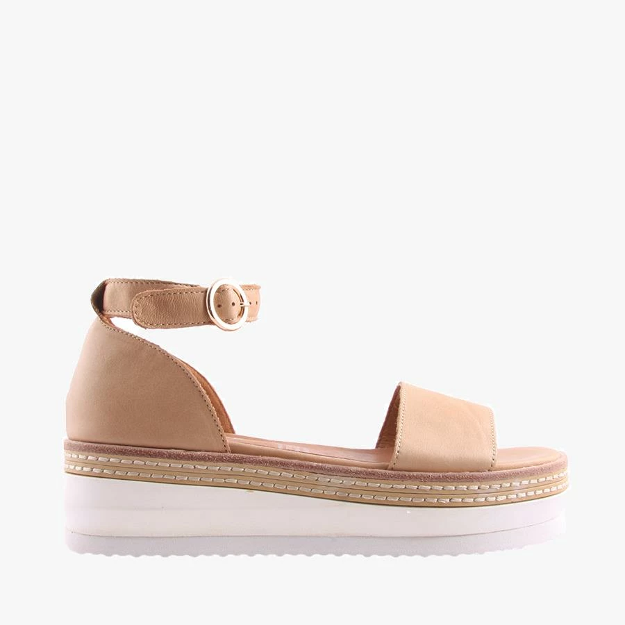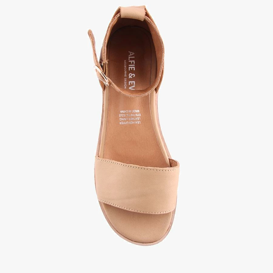 Isla by Alfie and Evie is a women’s leather flatform sandal featuring a soft cushioned sole, forefoot strap and a supportive cuffed heel with buckled ankle strap.