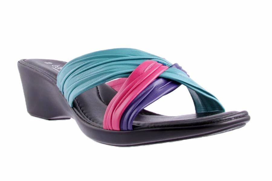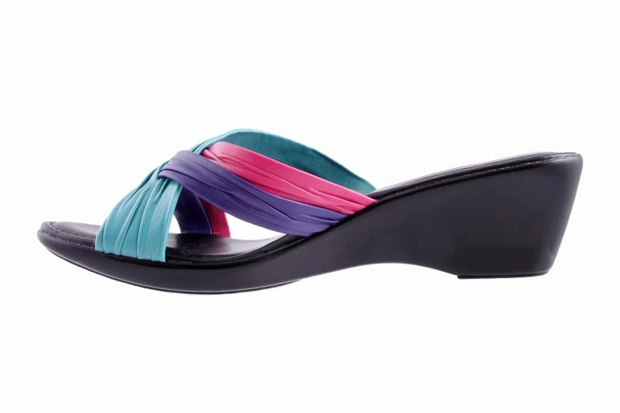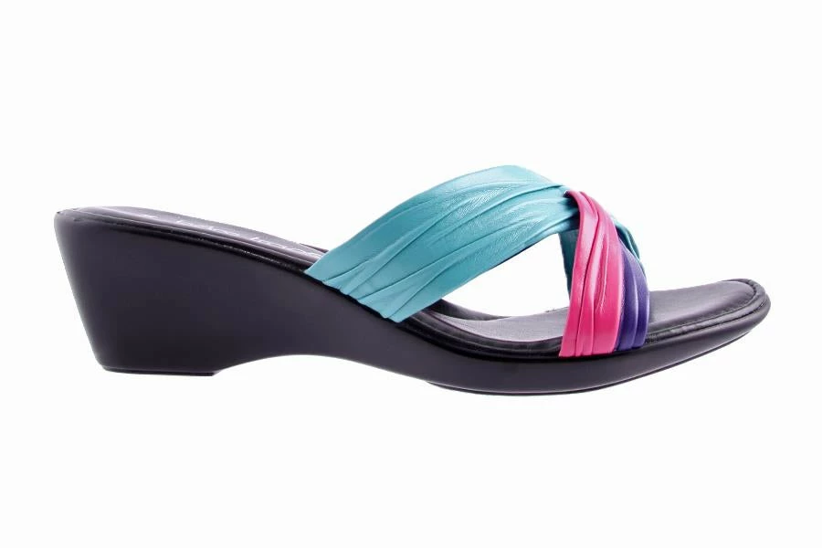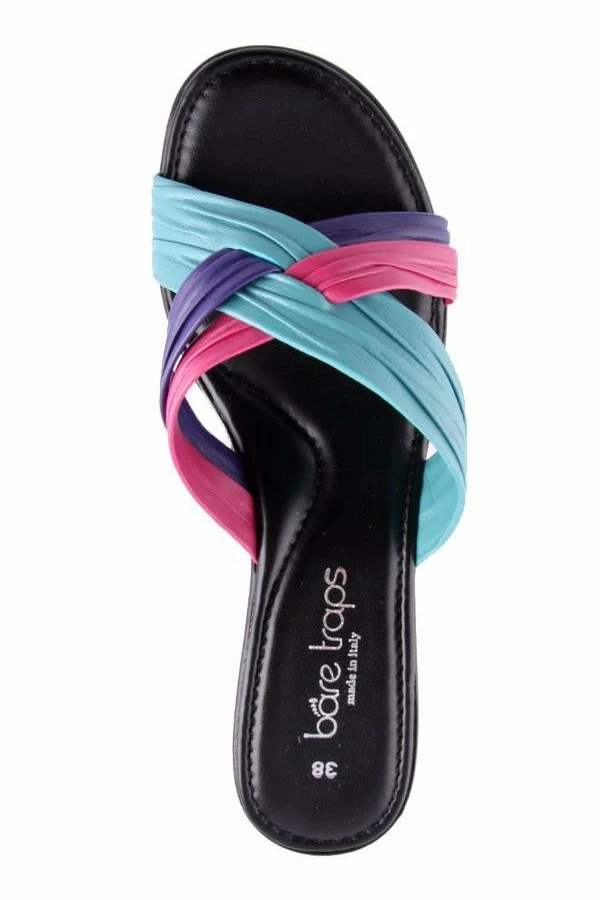 Como by Bare Traps women’s sandal is a made in Italy style – slide with ruched cross over in soft leather like materials. Como features a wedge and has a very classic and elegant silhouette, perfect for everyday wear.