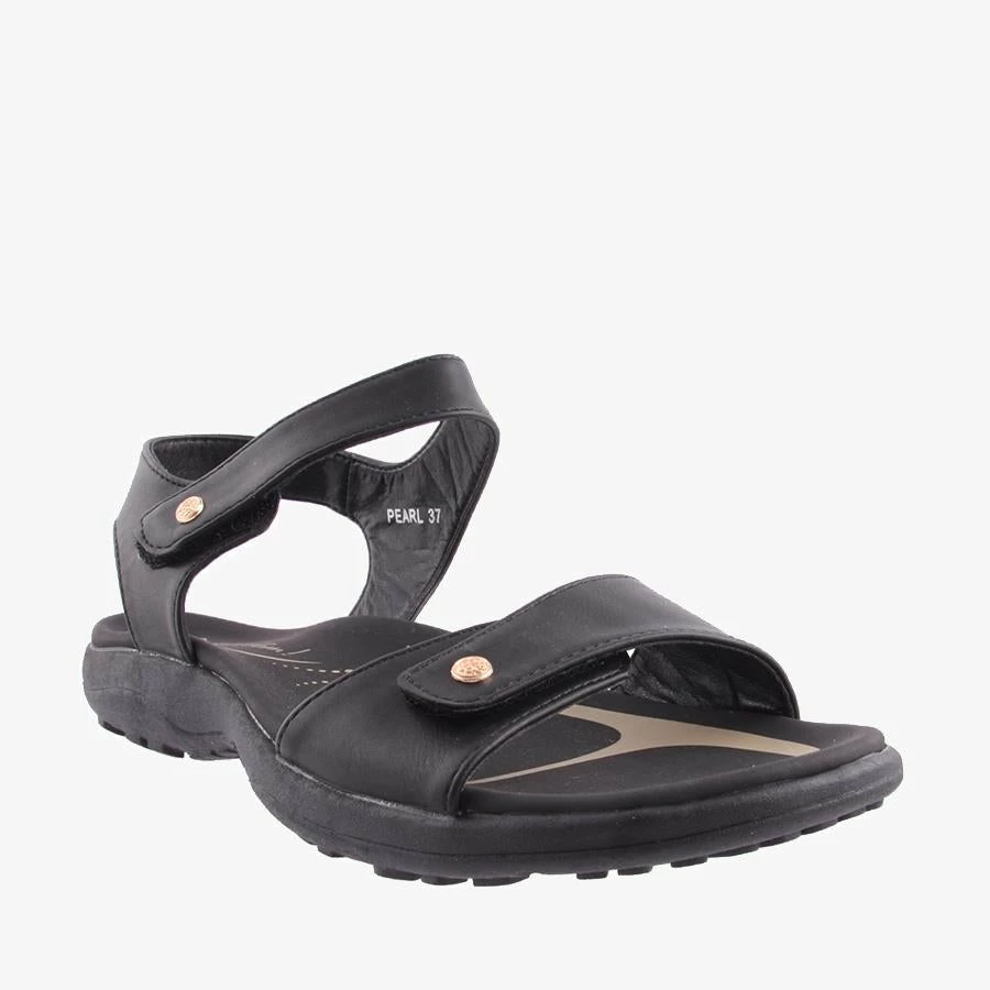 Pearl by Bare Traps is a women’s casual flat sandal featuring two fully adjustable velcro straps on the upper and a molded insole with padding for extra comfort.