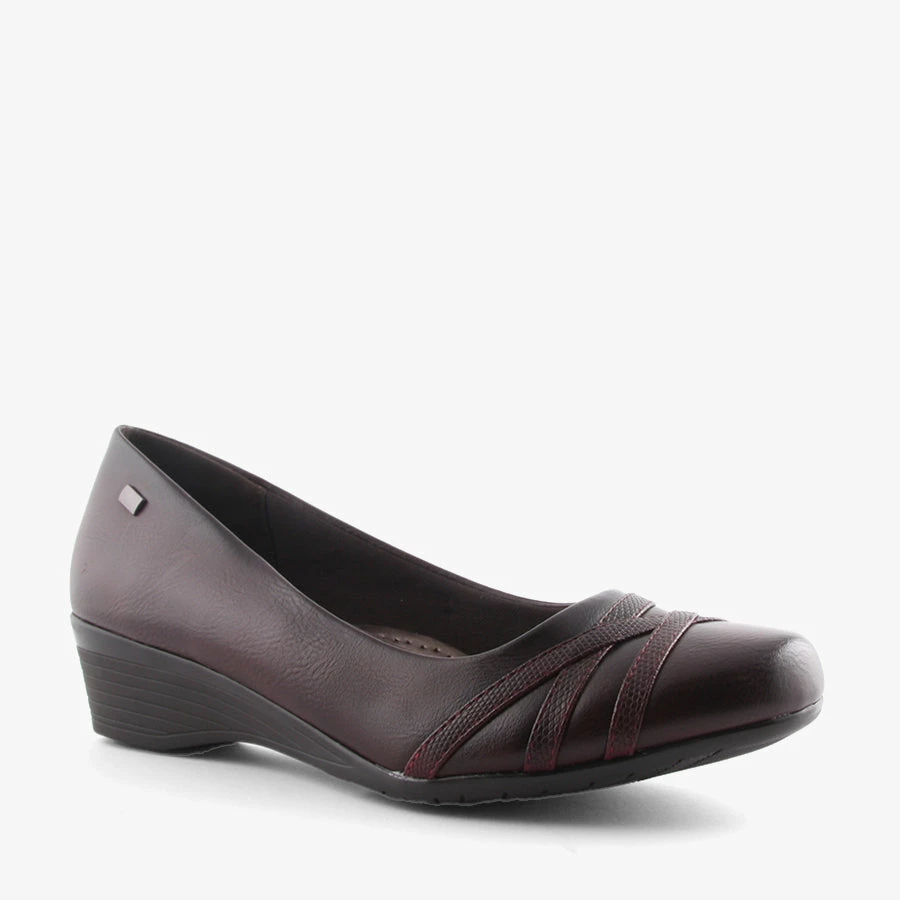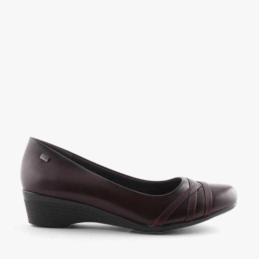 Kali by Baretraps is a woman’s comfort wedge featuring a padded insole for added comfort and croc printed cross strap accents.