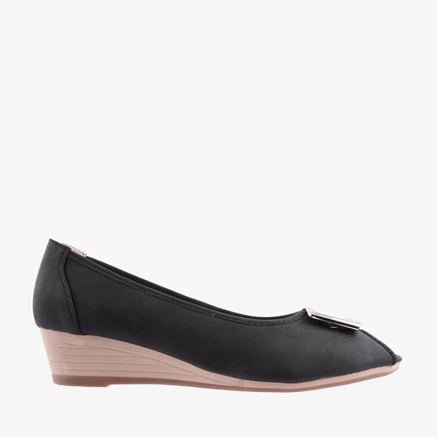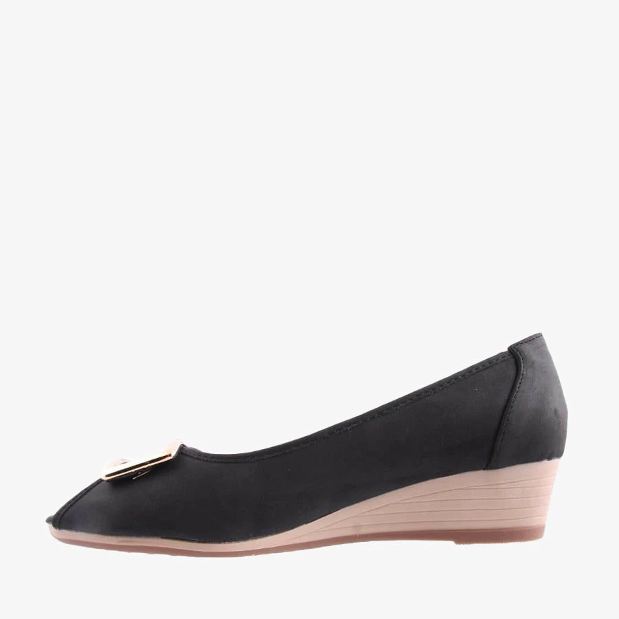 Brisa by Baretraps is a women’s wedge that features a padded insole, elegant peep toe design with a silver/gold buckle to top it off.
