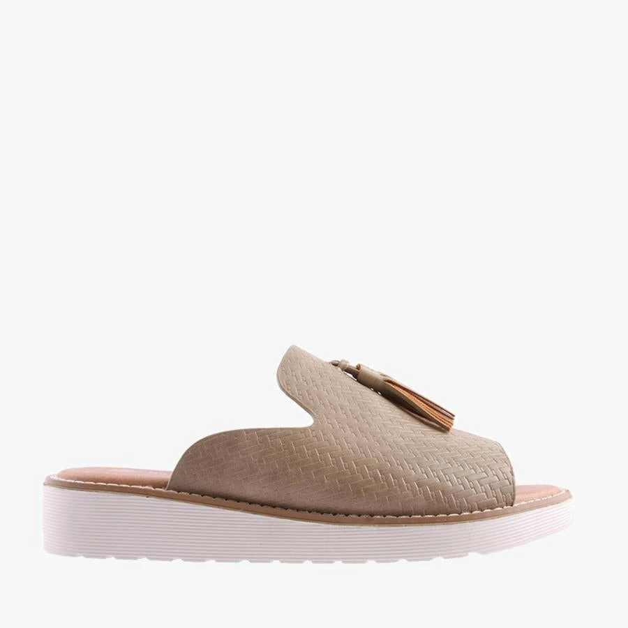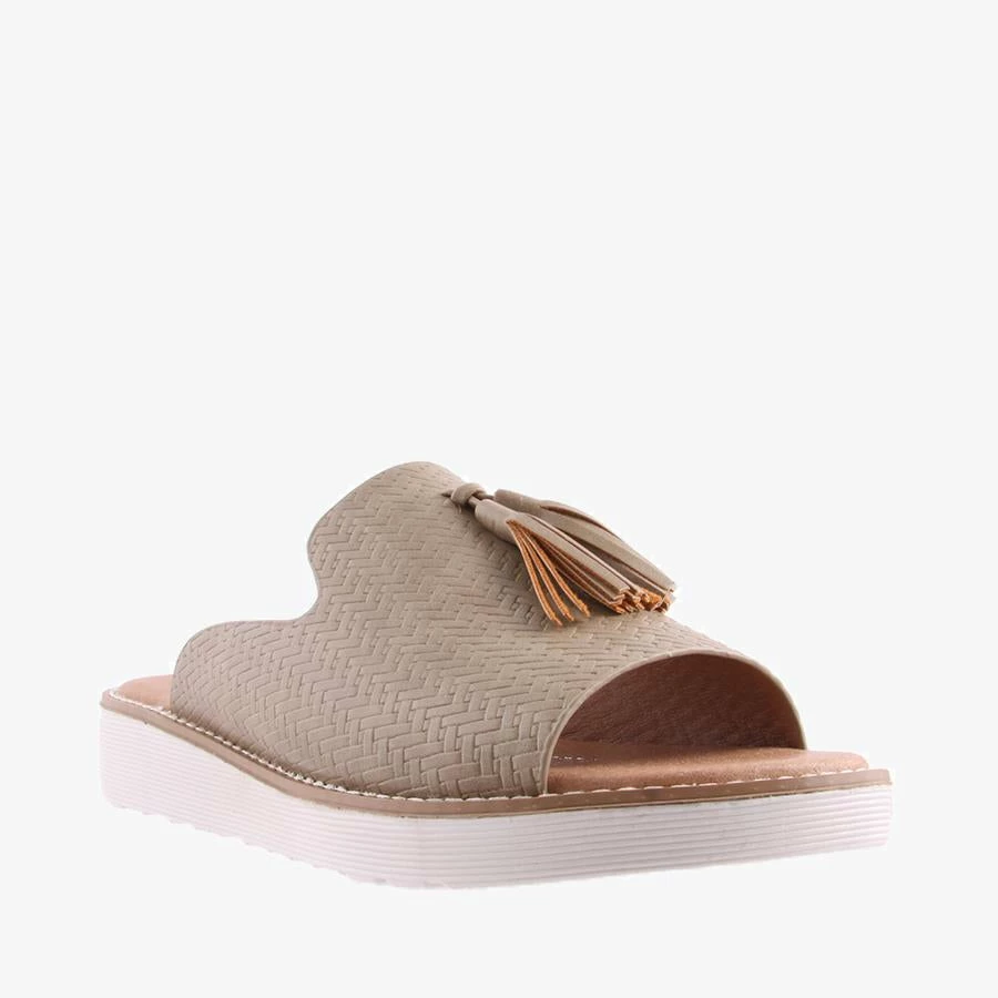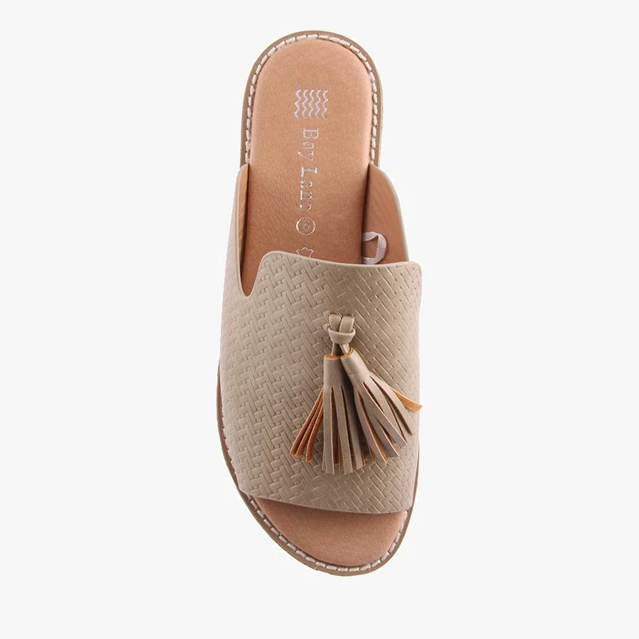 Basil by Bay Lane is a women’s slide with a dressy side. Basil features a padded sole for all day comfort, a woven look textured upper and sweet tassel details.
