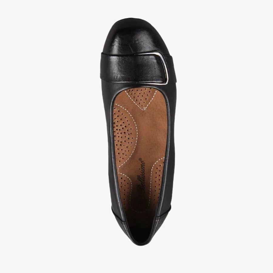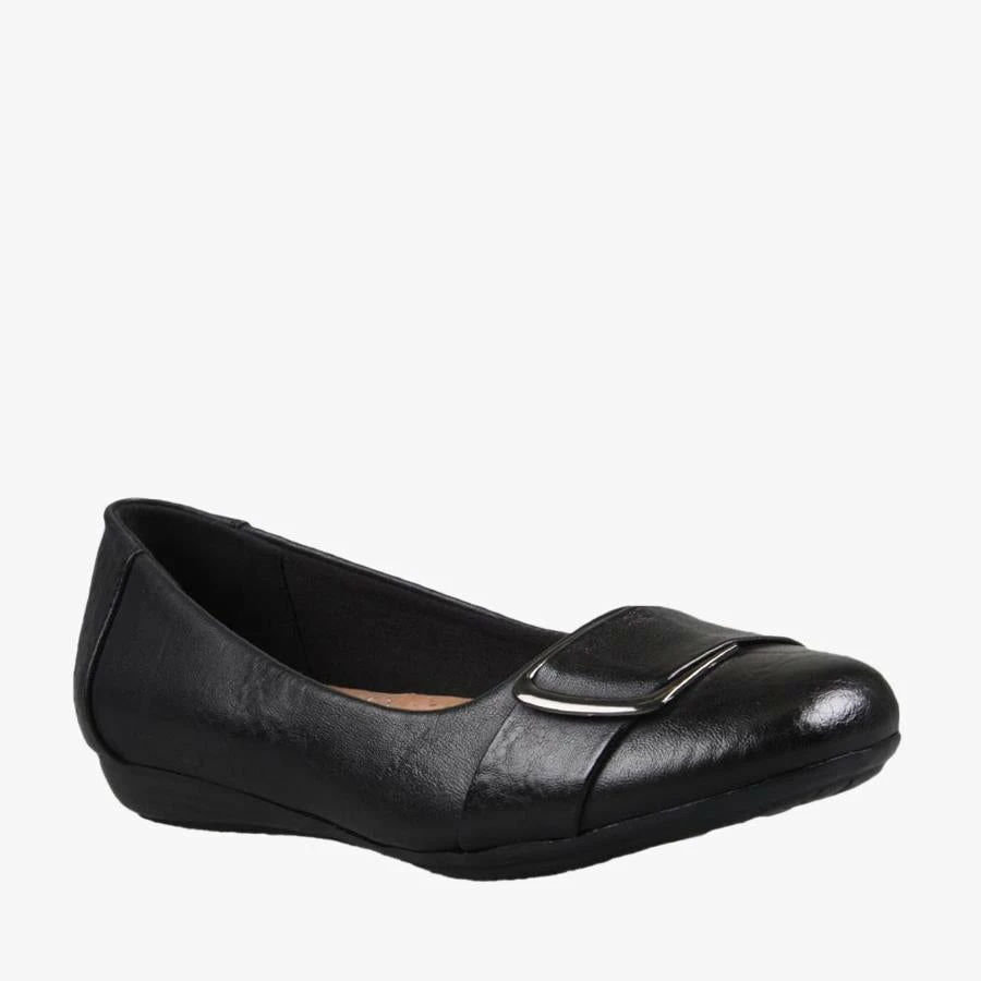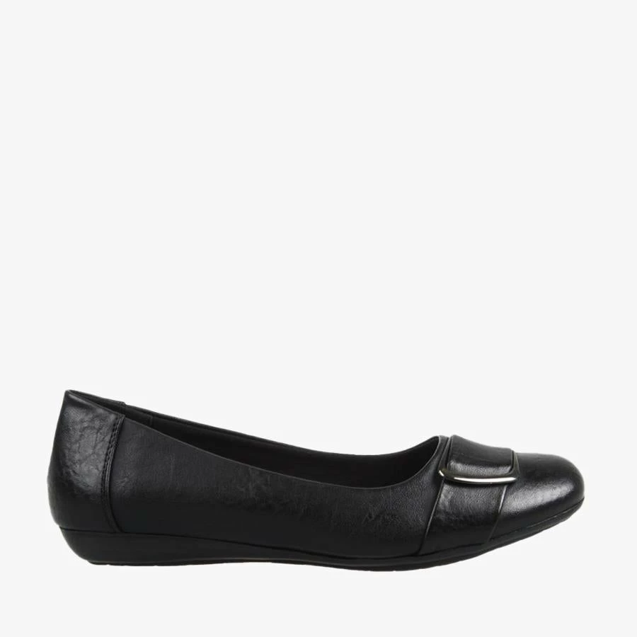 Michelle by Bellissimo is a women’s slip on ballet flat featuring buckle trim over the rounded toe and a soft lightly padded insole.