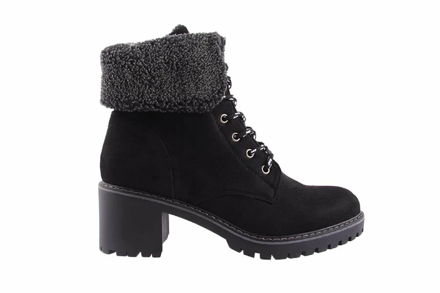 Wolfe by Bellissimo is a women’s boot that features a lace up front with a side zip with a faux fur collar.