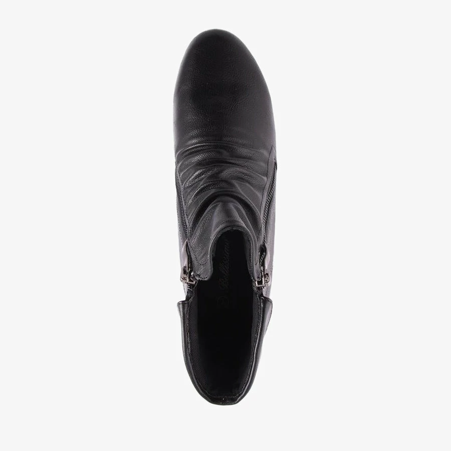 Valat by Bellissimo is a woman’s ankle boot that features a ruched upper, small heel and decorative outer zipper with a functioning inside zipper.