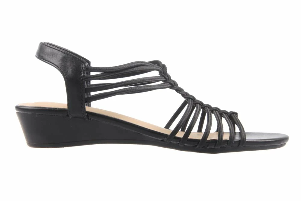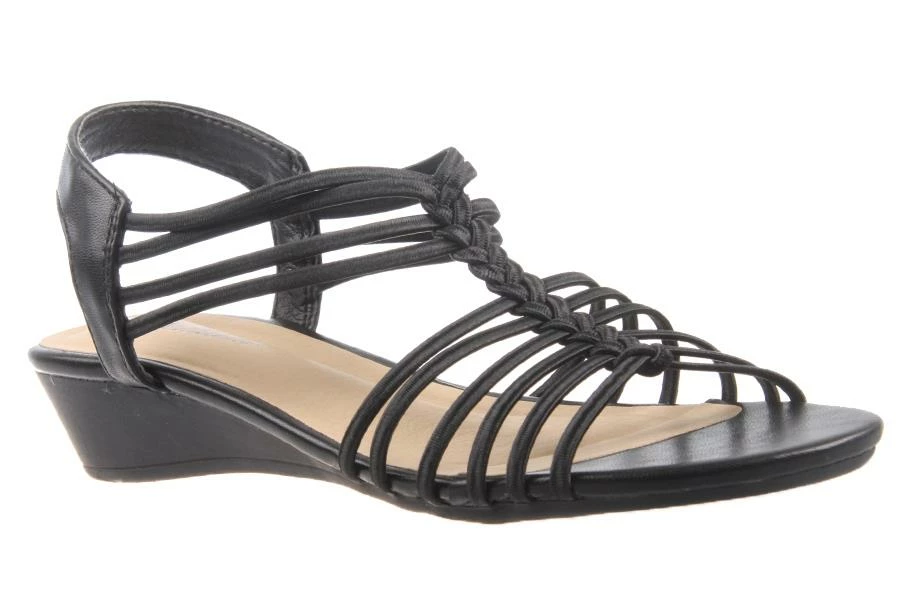 Elastik by Bellissimo is a women’s sandal featuring a stretch strappy upper with a plaited design on a lightly padded insole.