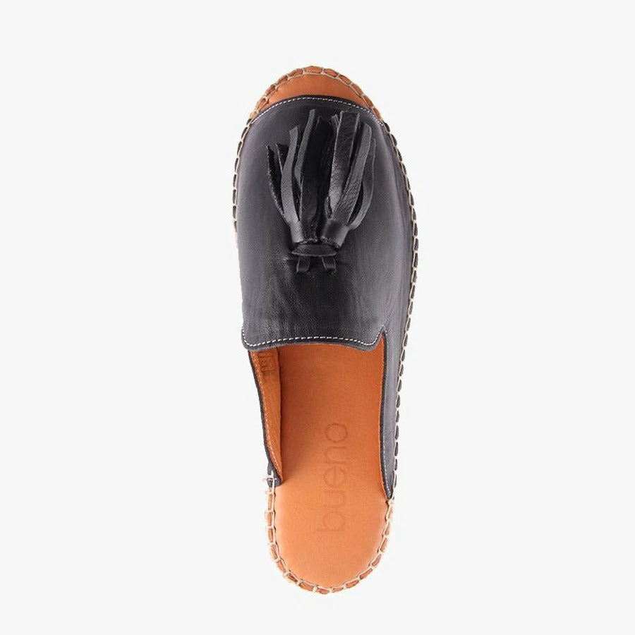 Keilor by Bueno is a women’s espadrille slide perfect for summer. Keilor feature a soft European leather upper with twin decorative tassel detail and an espadrille outsole. Made in Turkey