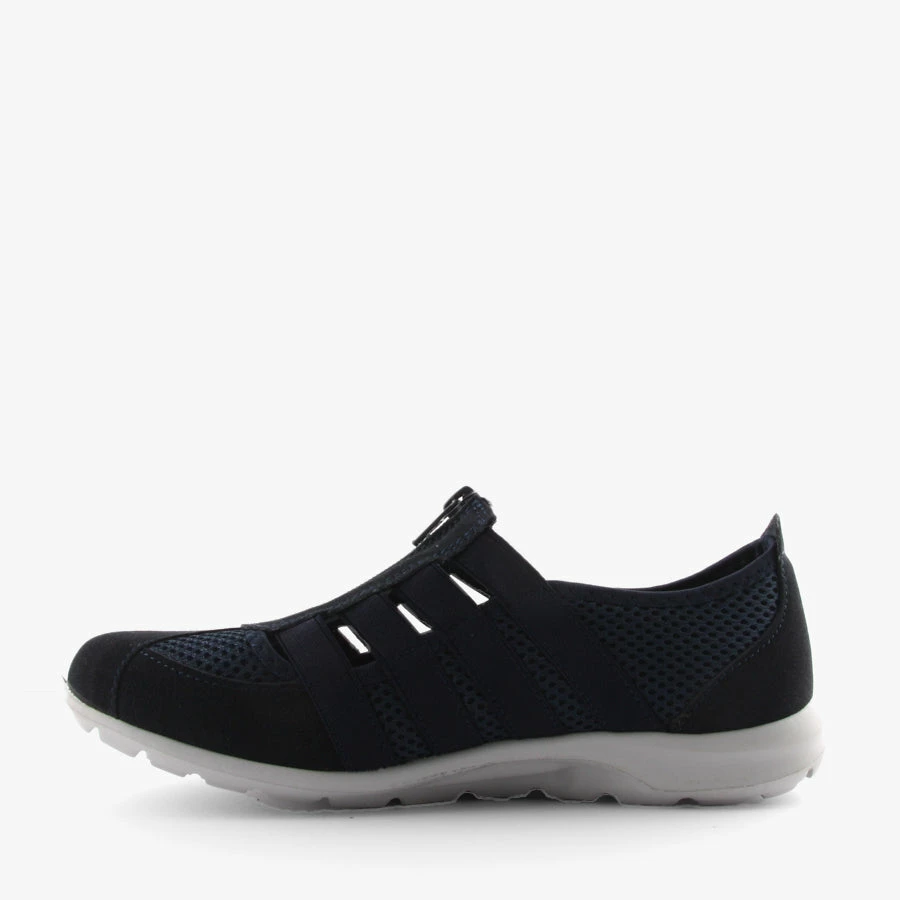 Slip into the sporty leisure style of Christine by CC Resorts. This women’s shoe features a mesh upper with suede and elastic overlays finished with a zip closure and removable padded insole.
