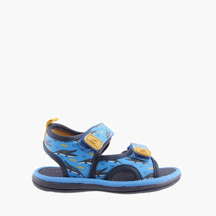 Fisher by Clarks is an infant’s sandal featuring two adjustable velcro straps on the upper with a soft fabric lining and flexible sole.