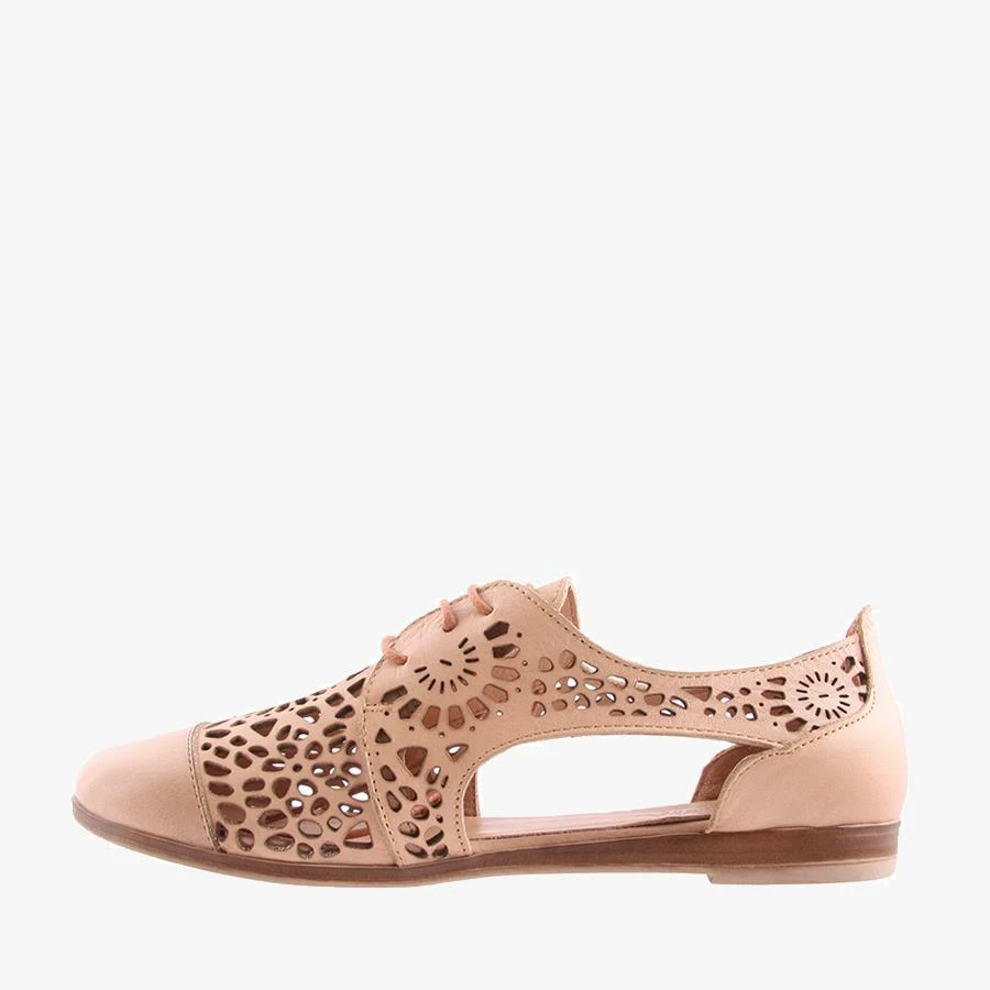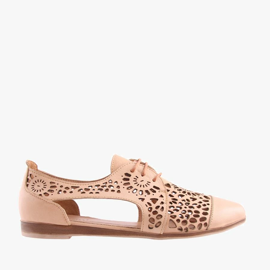 Kate by Donna Style is a lovely lightweight leather shoe. Kate is a lace up style with side cut outs and an intricate laser-cut upper. Made in Turkey.