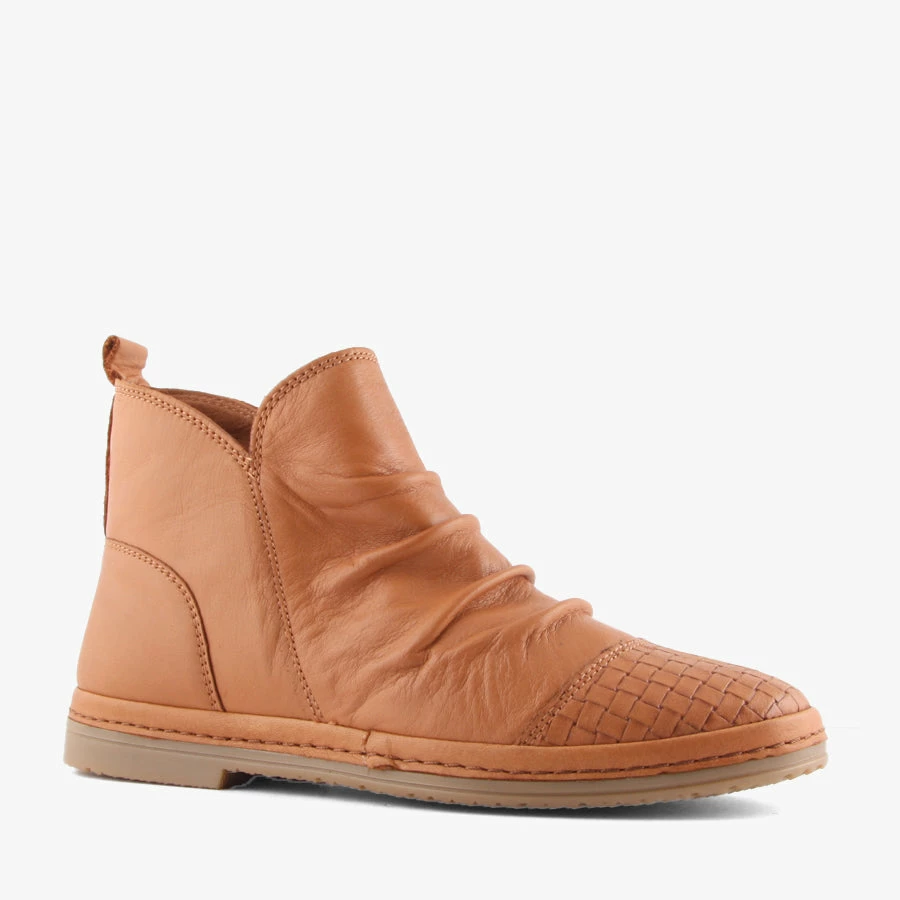 Bonnie by Donna Style is a women’s flat boot that features an incredibly soft leather upper, inner zip for easy wear and a woven toe detail.