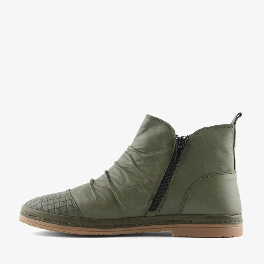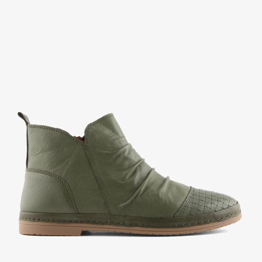 Bonnie by Donna Style is a women’s flat boot that features an incredibly soft leather upper, inner zip for easy wear and a woven toe detail.