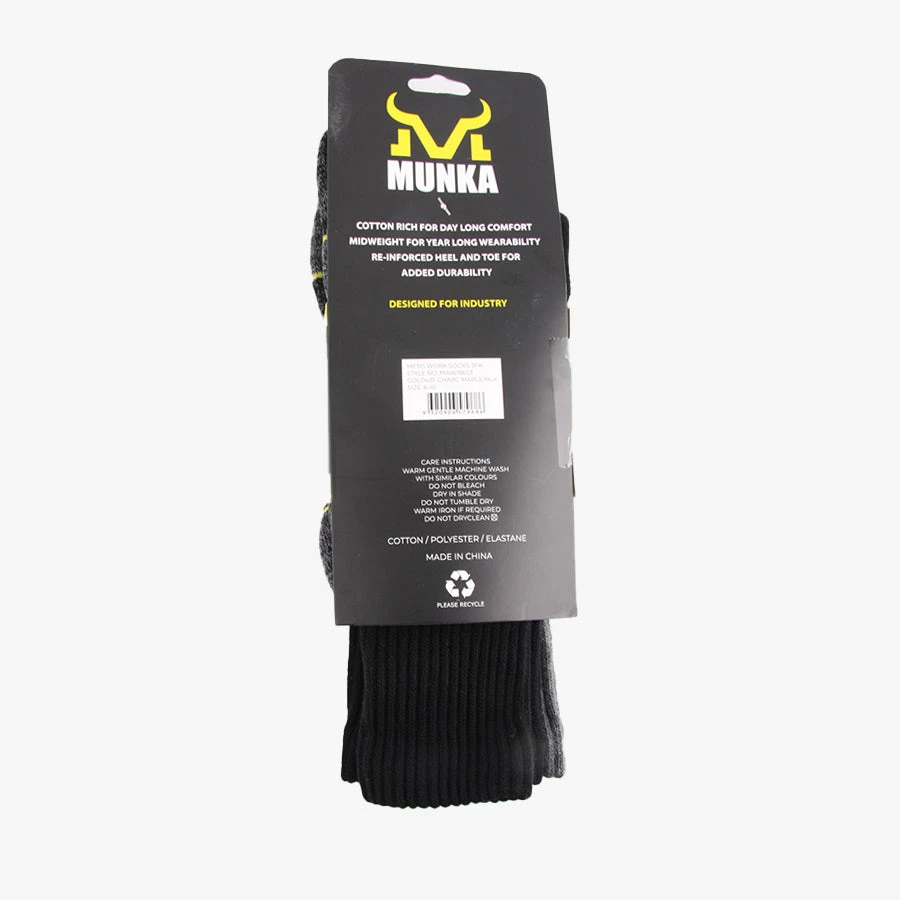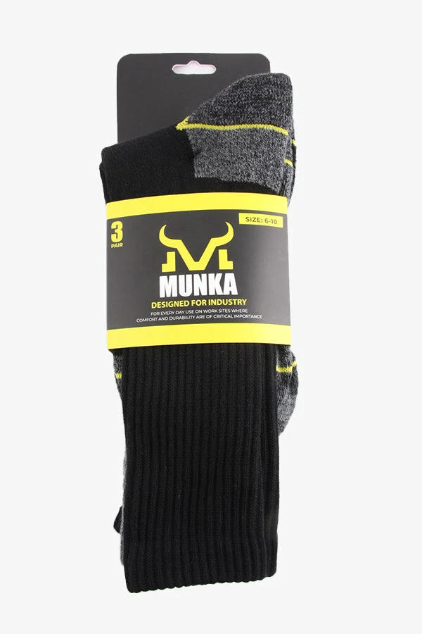 These Munka Work Socks (3 pack) are designed for every day use on work sites featuring day long comfort, year long wearability and a reinforced heel and toe for added durability. Sizes 6-10