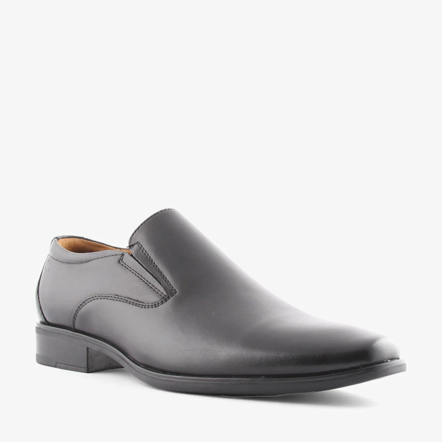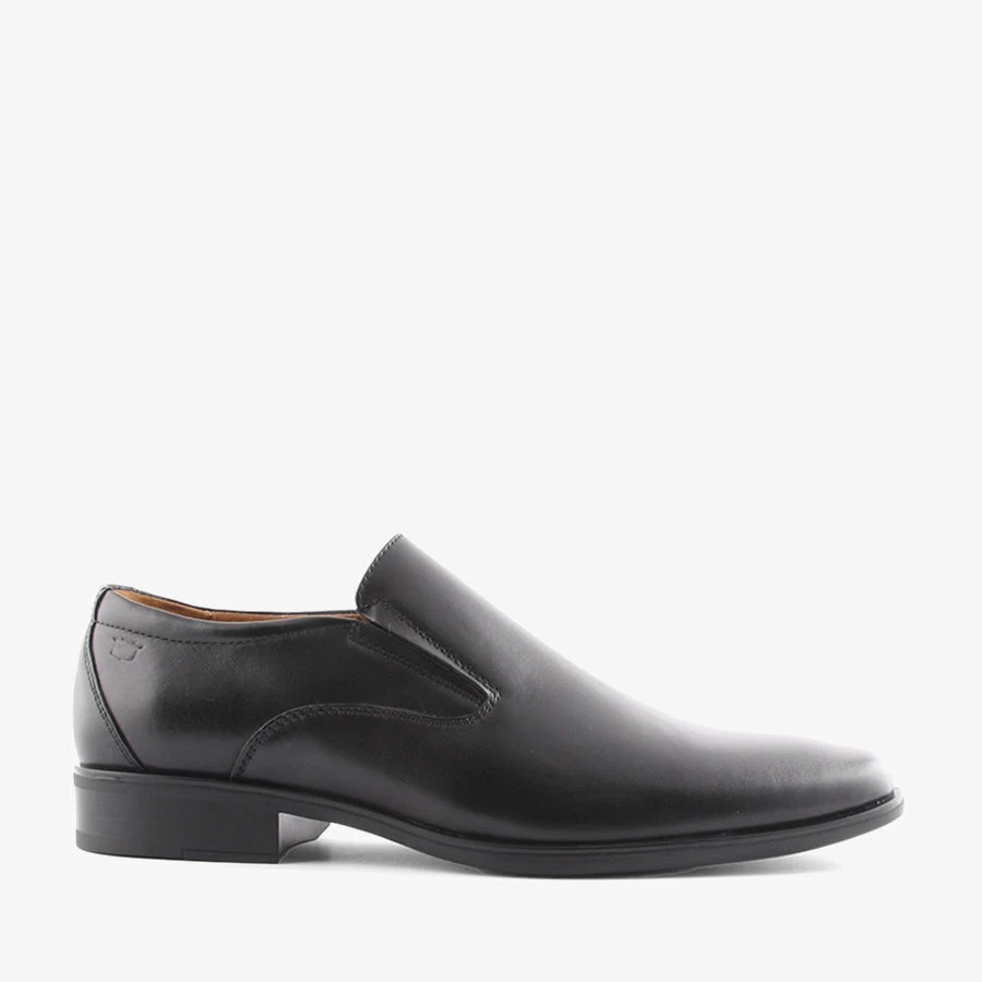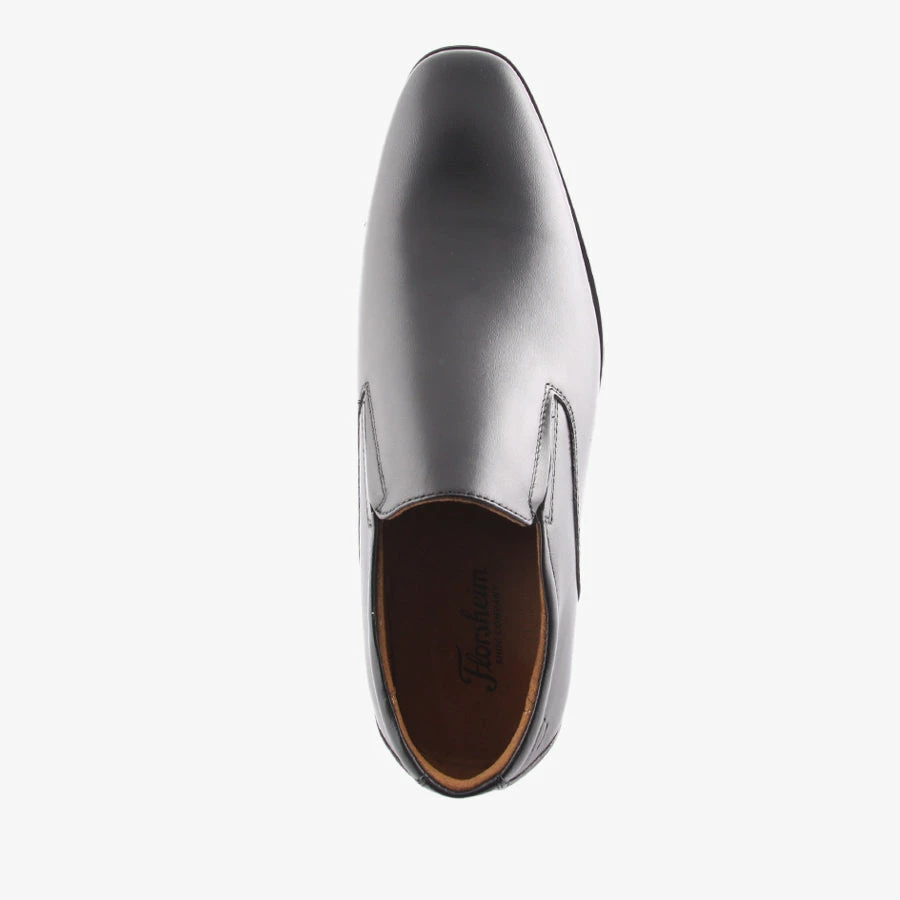 The Florsheim Jackson Slip On is a business shoe that features two side gussets to easily slip on and off and a woodstack heel design with durable non slip rubber toplift.