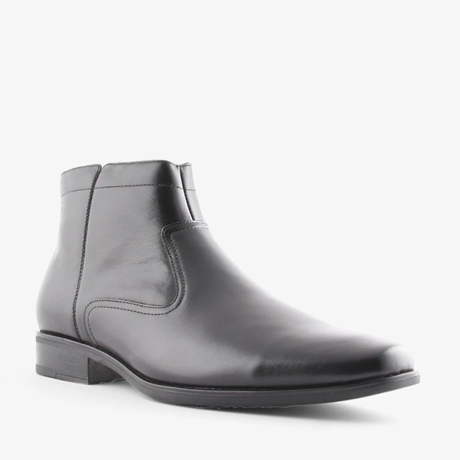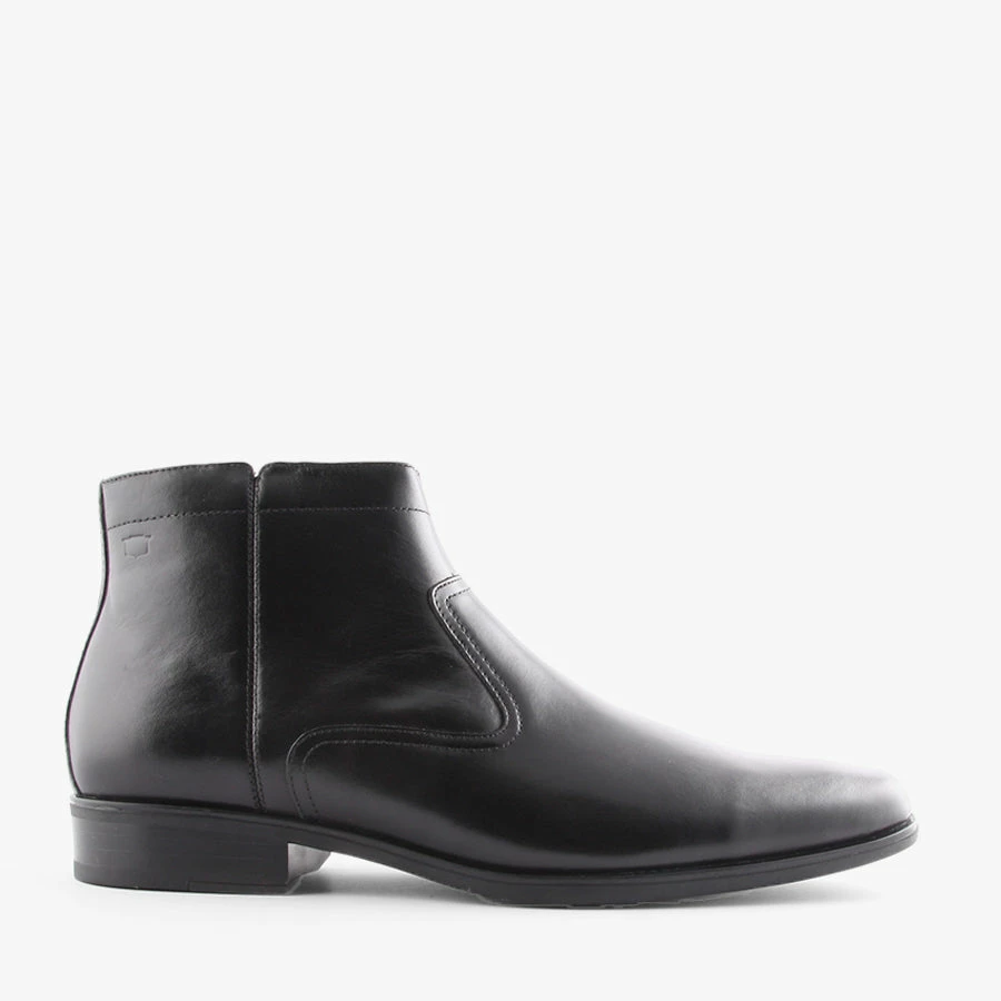The Florsheim Jackson Plain Toe Zip Boot is a classy boot featuring a woodstacked heel and a contemporary tapered toe shape.