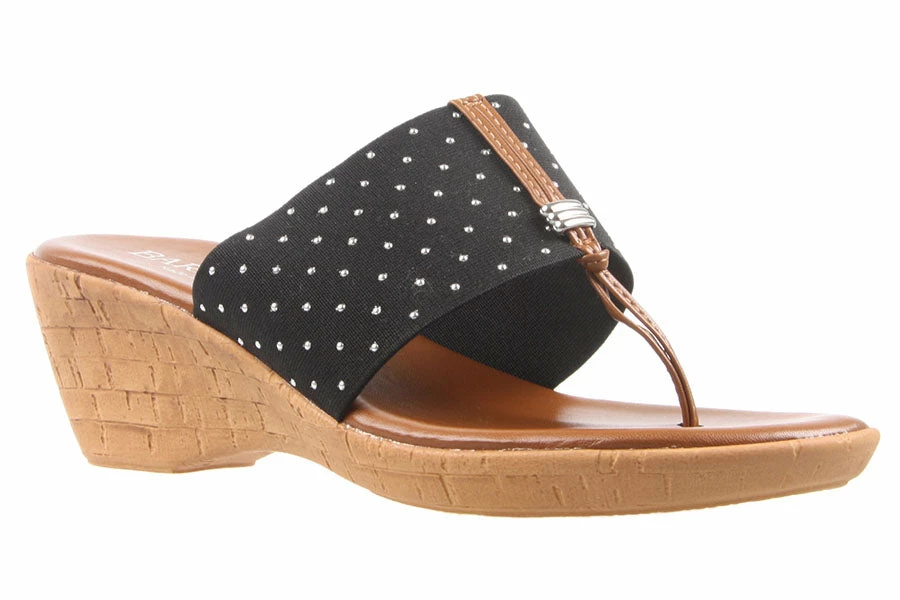 Tuscany by Barletta is a women’s slip on wedge sandal featuring a studded elastic upper and a lightly padded insole. Ideal for completing your summer look.