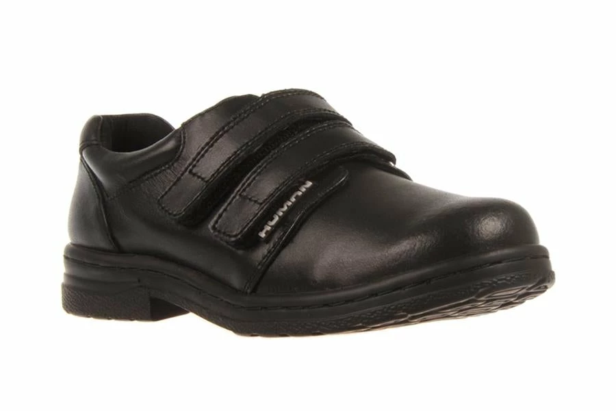 Grammar by Human is a kid’s school shoe featuring dual velcro straps on a smooth leather upper. Grammar is also lightweight, features a padded collar for comfort and a removable insole.