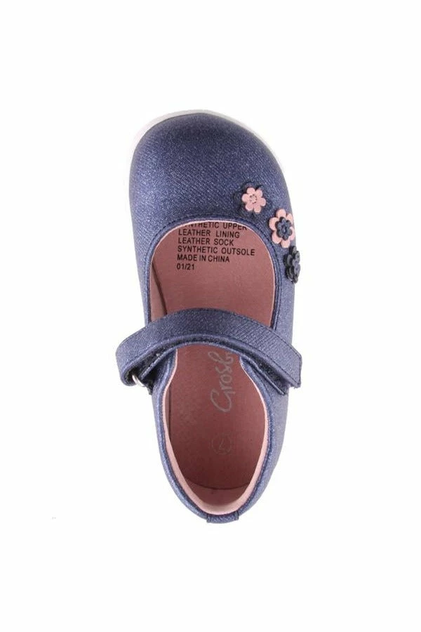 Daffodil by Grosby is a infant’s mary jane style that features a shimmer upper with flower details.
