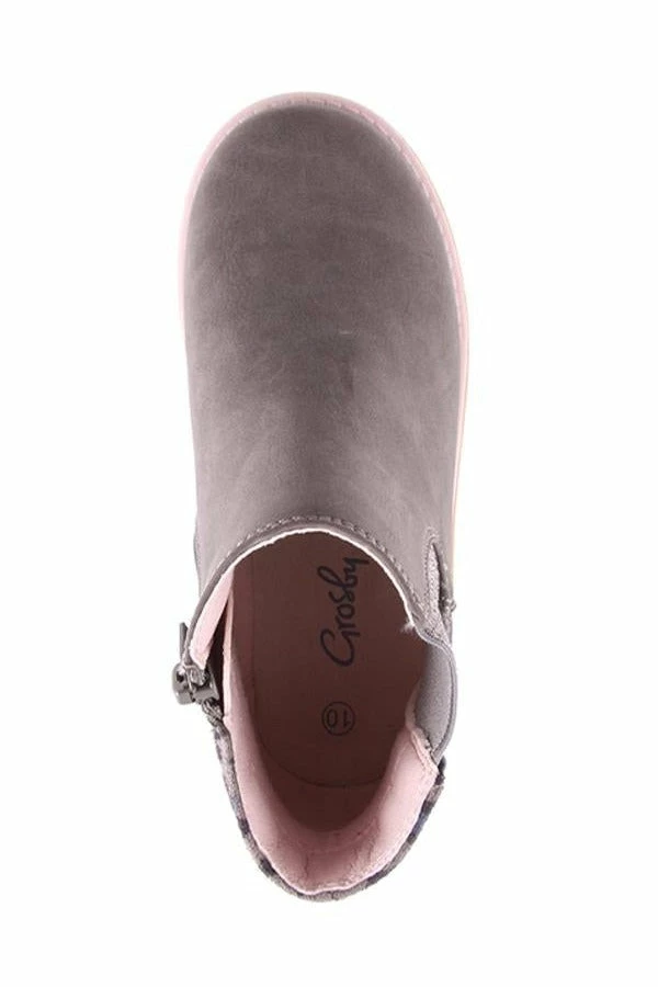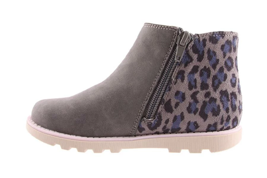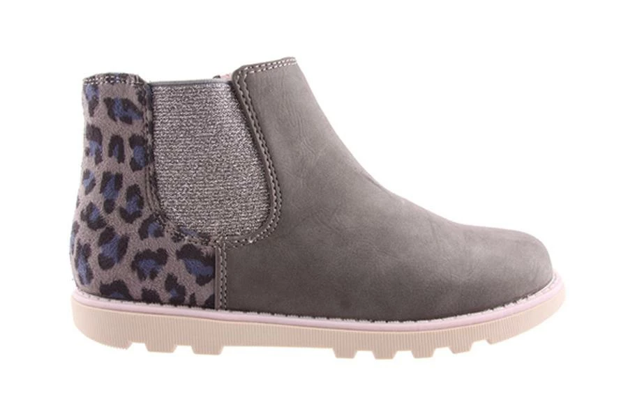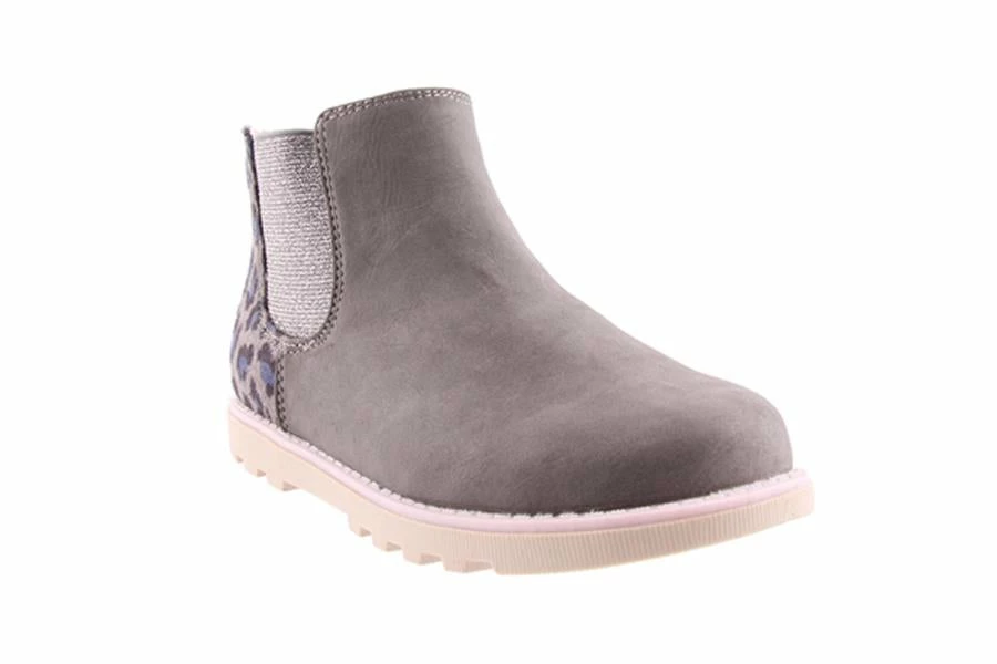 Pepper by Grosby is a kid’s ankle boot that features a sparkle elastic gusset, soft leopard print micro-suede heel and side zip for easy wear.