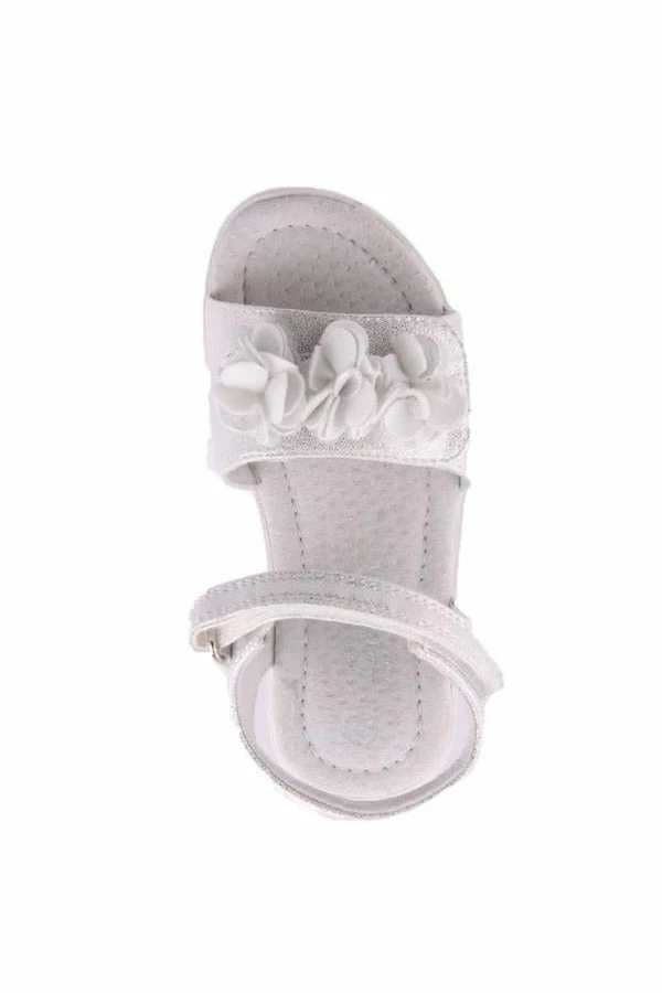 Sakira by Grosby is an infant’s sandal featuring two adjustable velcro straps embellished with flowers and finished with a leather lined insole.