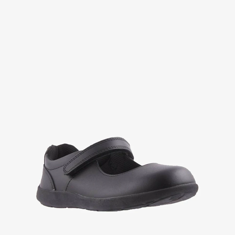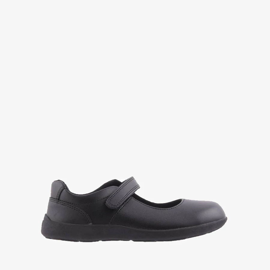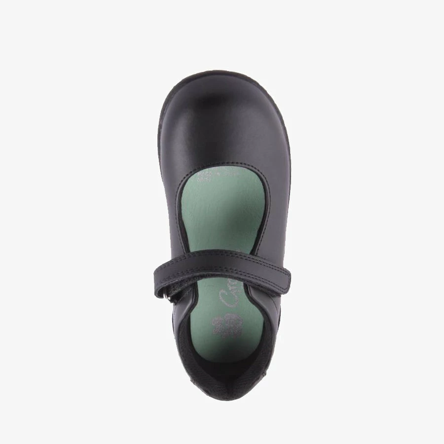 Daisy by Grosby is a kids Mary Jane school shoe featuring a smooth leather upper with a velcro strap closure and a removable insole.