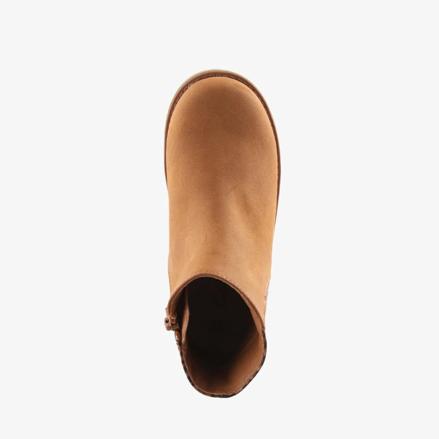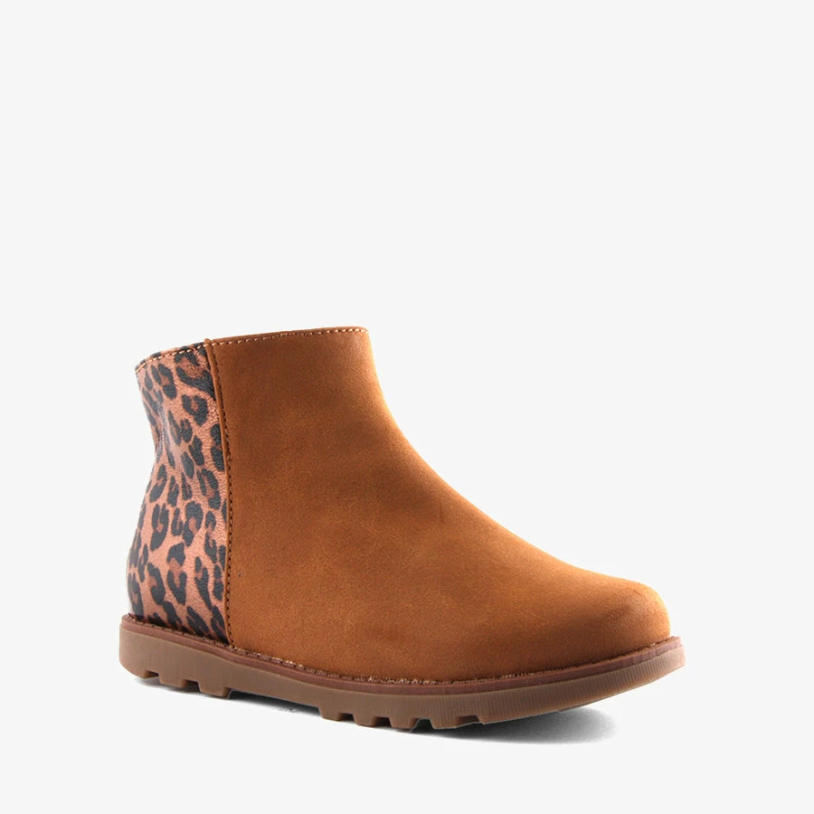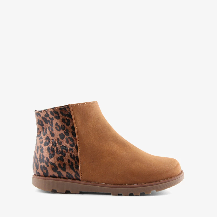Poppy by Grosby is a kid’s ankle boot that features a sparkle elastic gusset, soft leopard print micro-suede heel and side zip for easy wear.