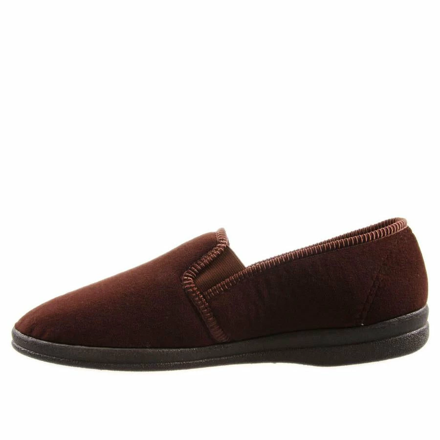 Percy by Grosby is a men’s slipper with elasticised side gussets and a plush velvety upper on a tred sole.