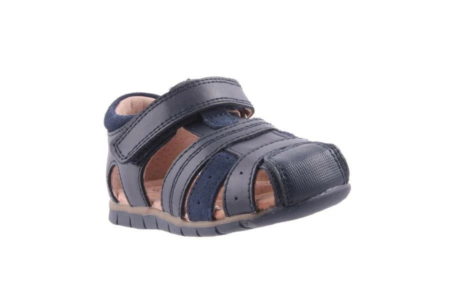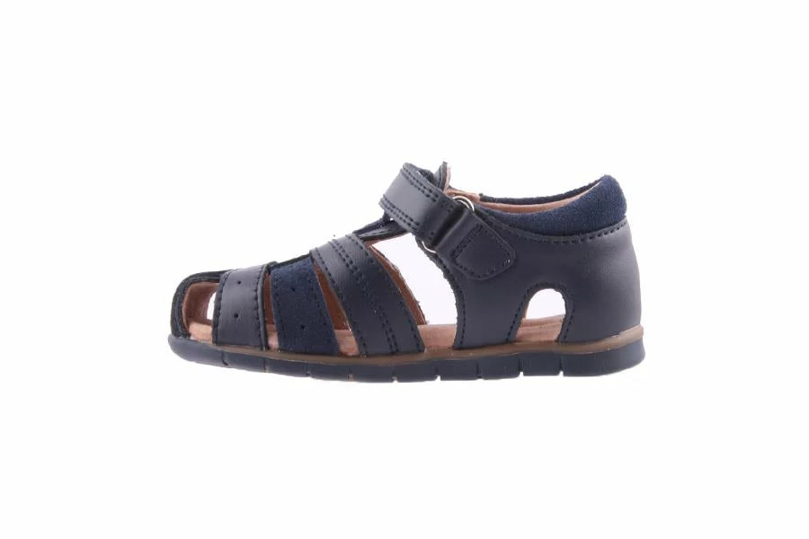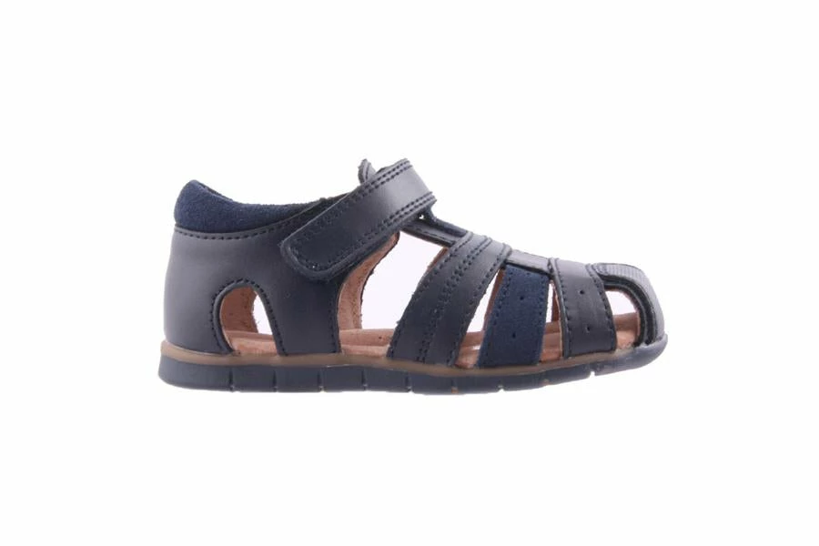 Albion by Grosby is an infant’s sandal featuring a covered toe with a leather and suede upper finished with a leather lining and velcro strap closure.
