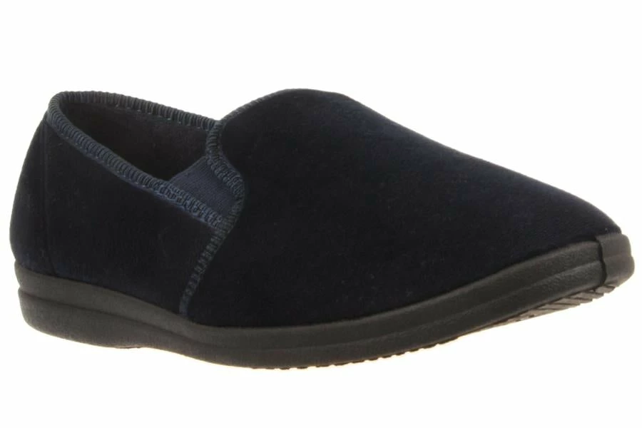 Percy by Grosby is a men’s slipper with elasticised side gussets and a plush velvety upper on a tred sole.