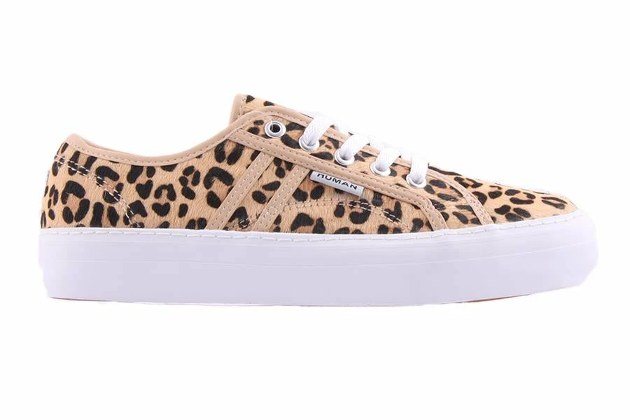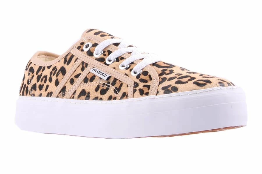 Cass by Human Premium is a women’s sneaker featuring an ocelot upper with lace up front and chunky sole.