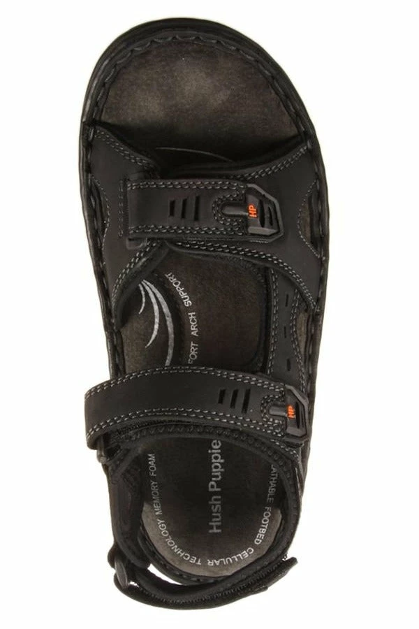Simmer by Hush Puppies is a men’s sandal featuring three adjustable velcro straps and a breathable memory foam footbed