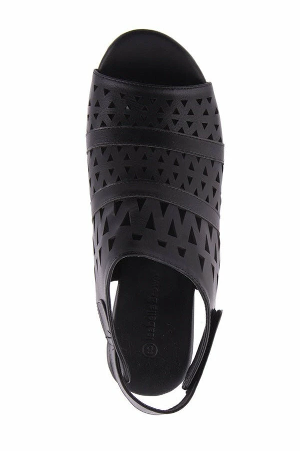 Davy by Isabella Brown is a womens block heel featuring a laser cut design and velcro fastening strap.