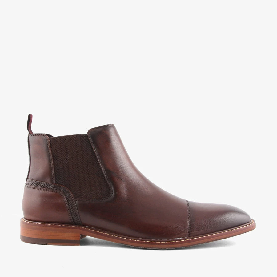 Bask by Julius Marlow is a men’s dress boot featuring a soft leather upper, toe cap, elastic sides and a stacked heel. This is the perfect dress boot for every occasion.