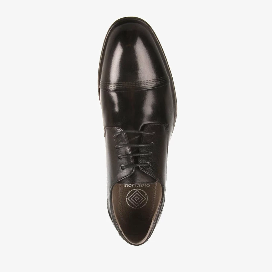 Expand by Julius Marlow is a men’s dress shoe with a lace up front and detailed with printed top stitching across the rounded toe cap and back heel.