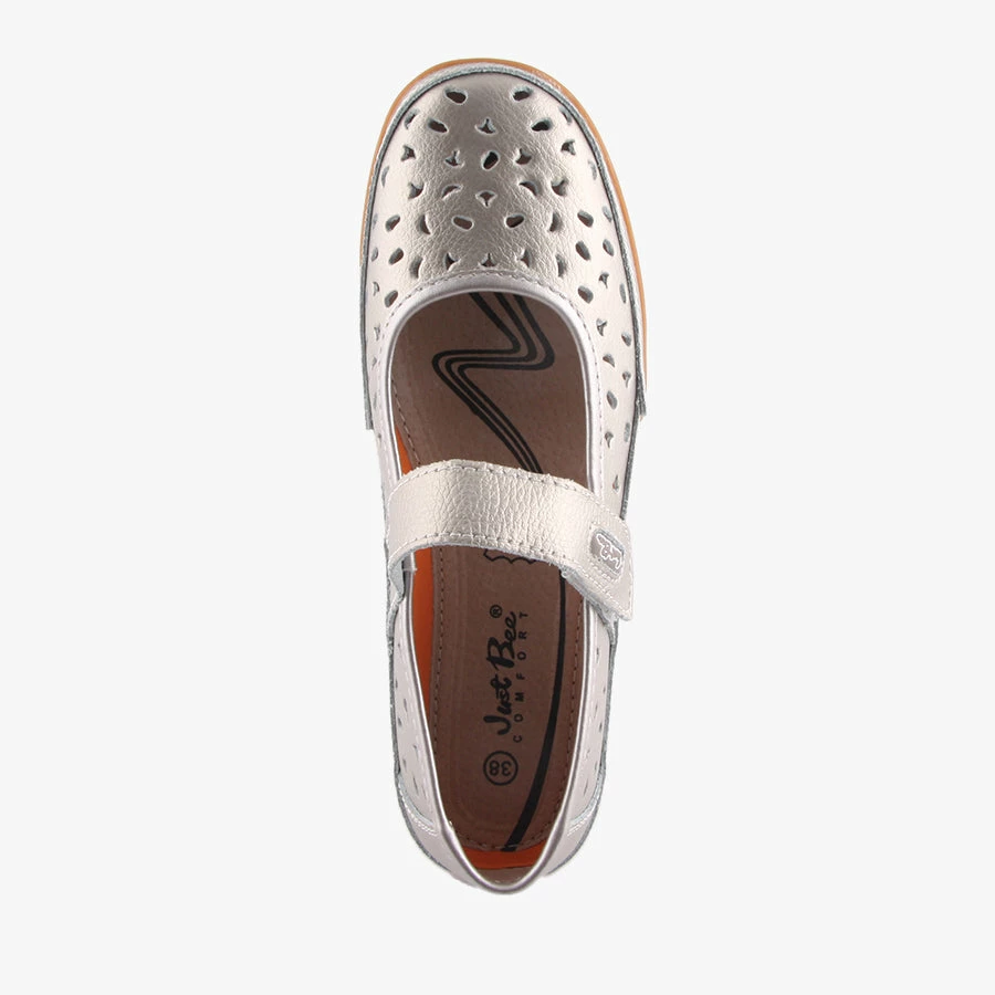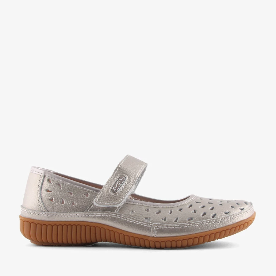 Cale by Just Bee is an ideal casual for everyday wear. The Mary Jane style velcro strap makes it easy to slip on and off and the laser cut leather upper offers an on trend design.