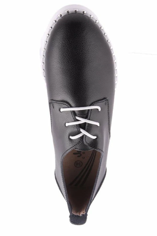 Corinne by Just Bee is a women’s lace up leisure shoe featuring a textured leather upper with contrast laces and a contrast sole with studs.