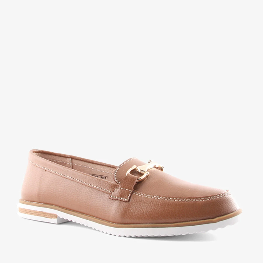 Cressy by Just Bee classic leather loafer with round toe, padded footbed and finished with a gold-tone snaffle, fit for all day comfort and style.