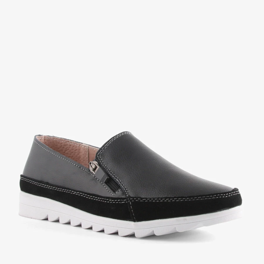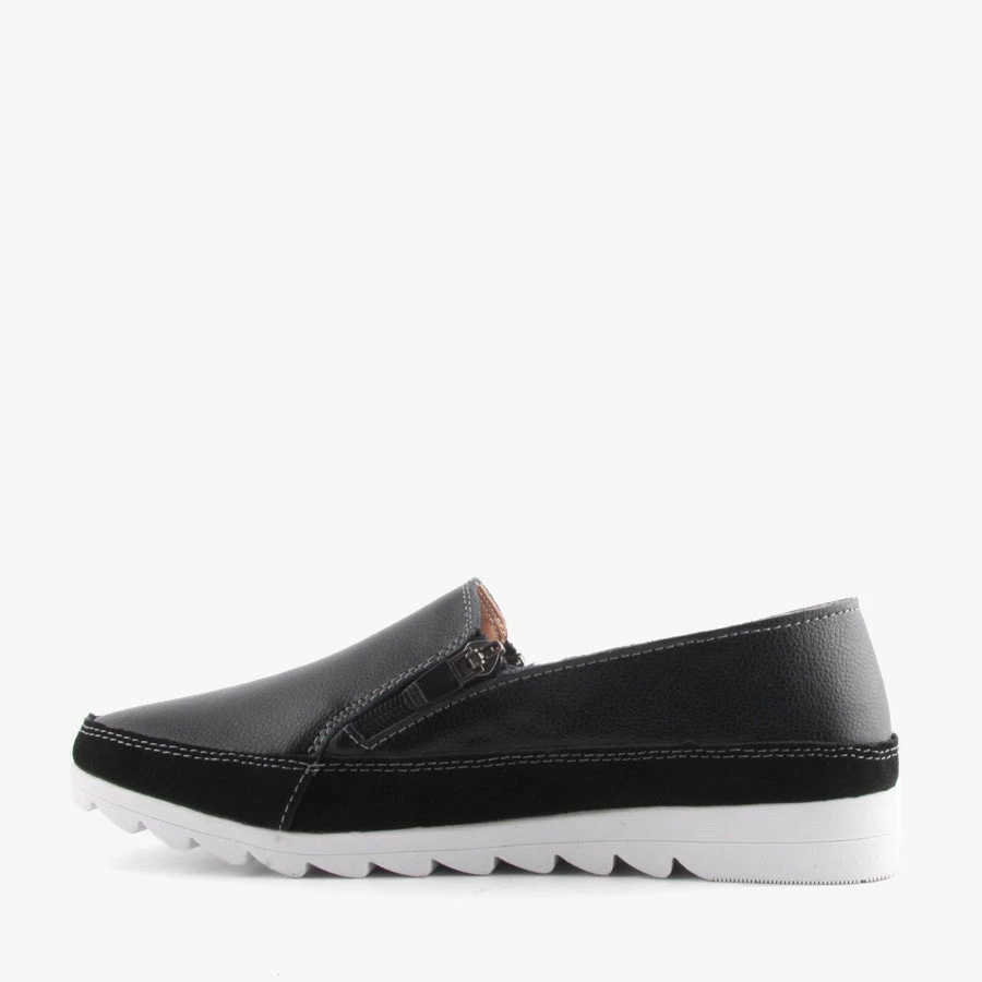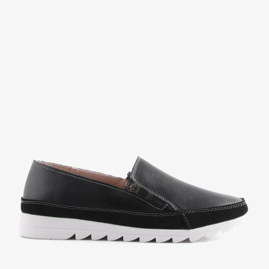 Costas by Just Bee is a women’s trans seasonal loafer featuring two side zippers for easy slip- on access, leather upper and lining, and a non-slip sole.