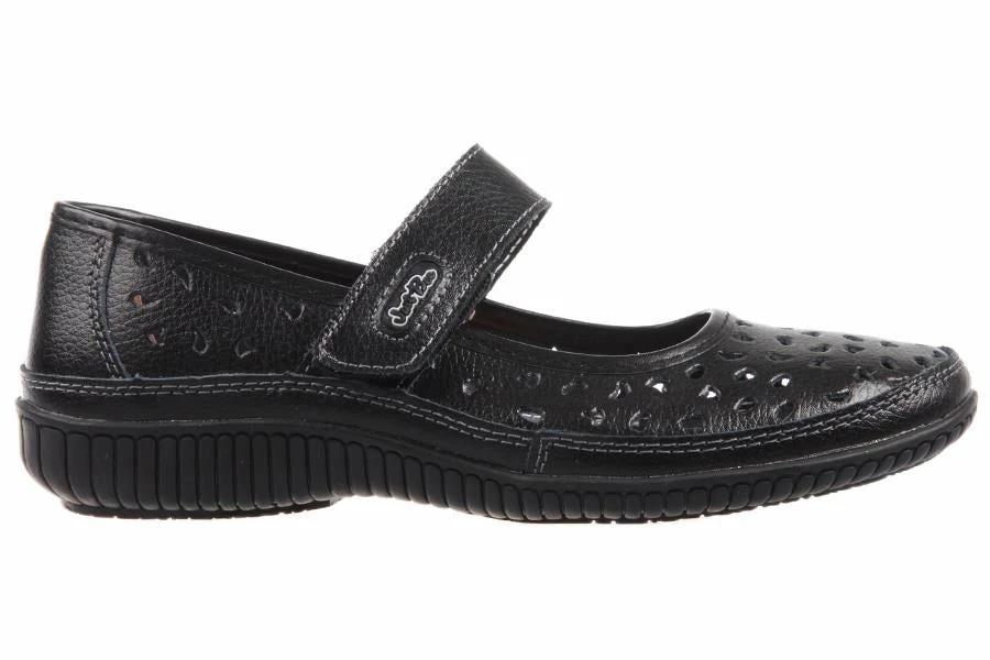 Cale by Just Bee is an ideal casual for everyday wear. The Mary Jane style velcro strap makes it easy to slip on and off and the laser cut leather upper offers an on trend design.