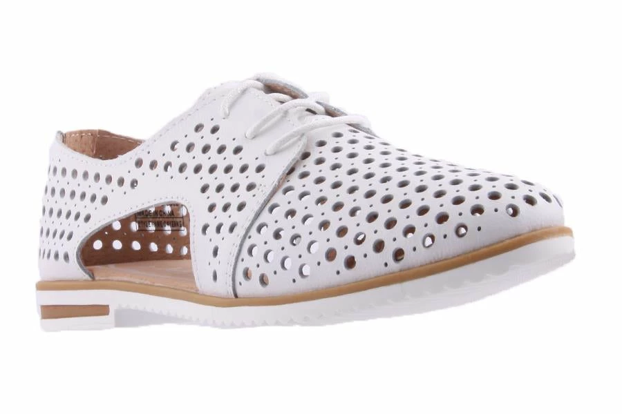 Cayenne by Just Bee is a women’s lace up leisure shoe featuring a perforated leather upper with cut out sides finished with a leather lining.