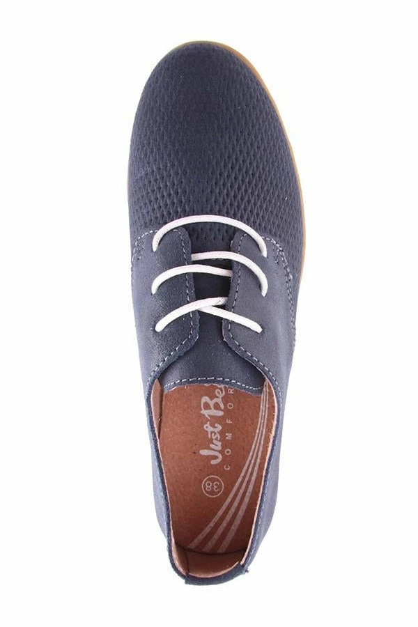 Chary by Just Bee is a lace up woman’s leisure shoe featuring a soft leather shimmer upper and a textured toe panel.