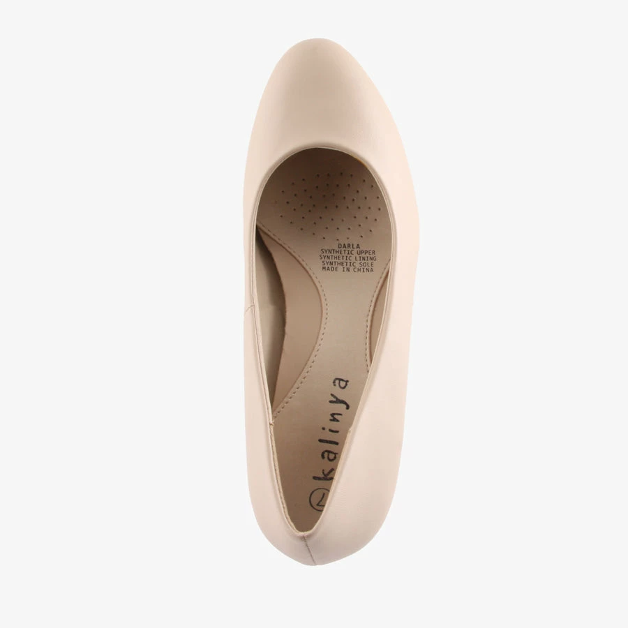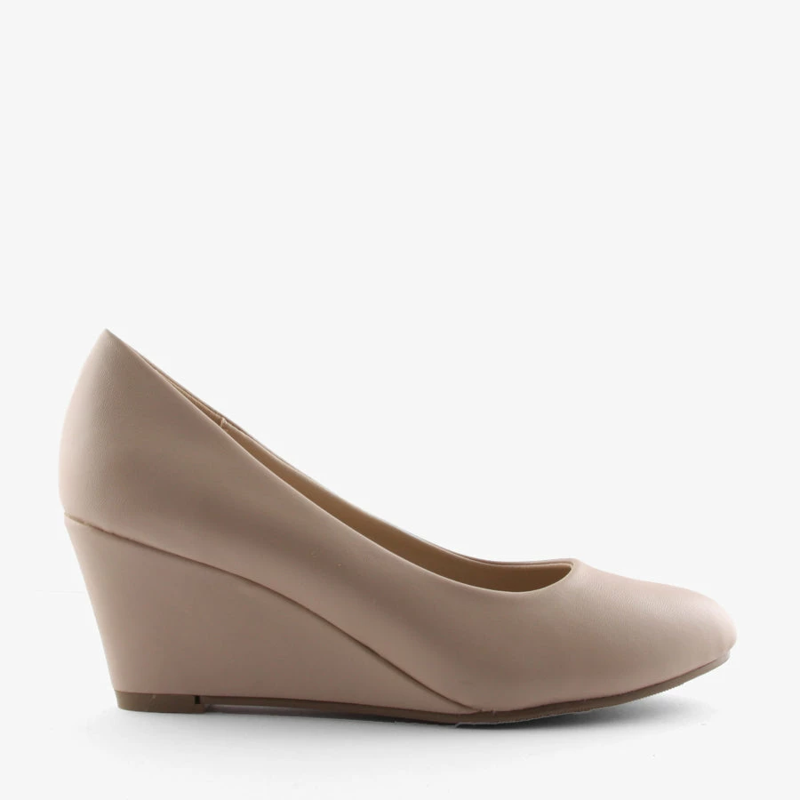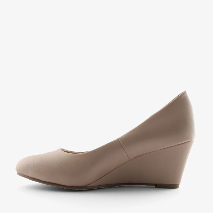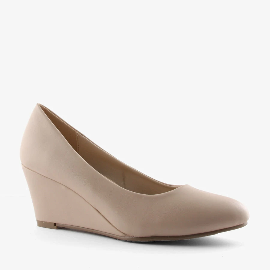 Darla by Kalinya is a slip on wedge with a cushioned inner sole and rounded toe.
