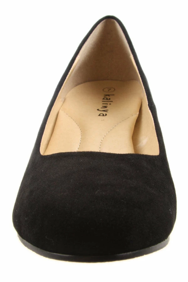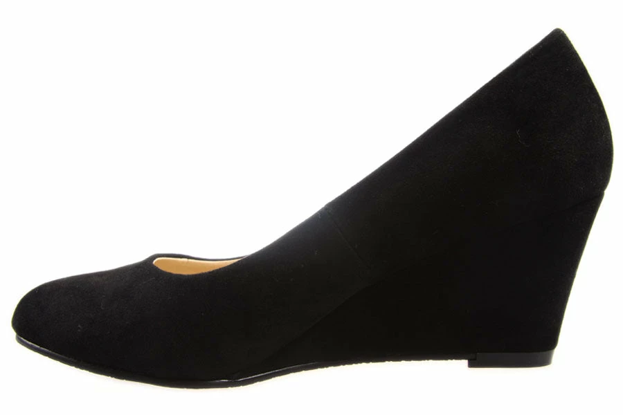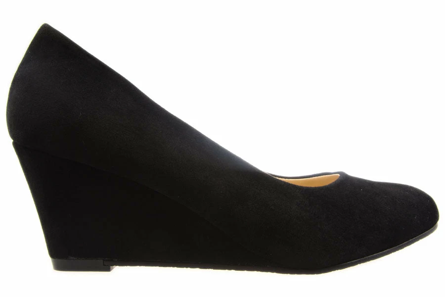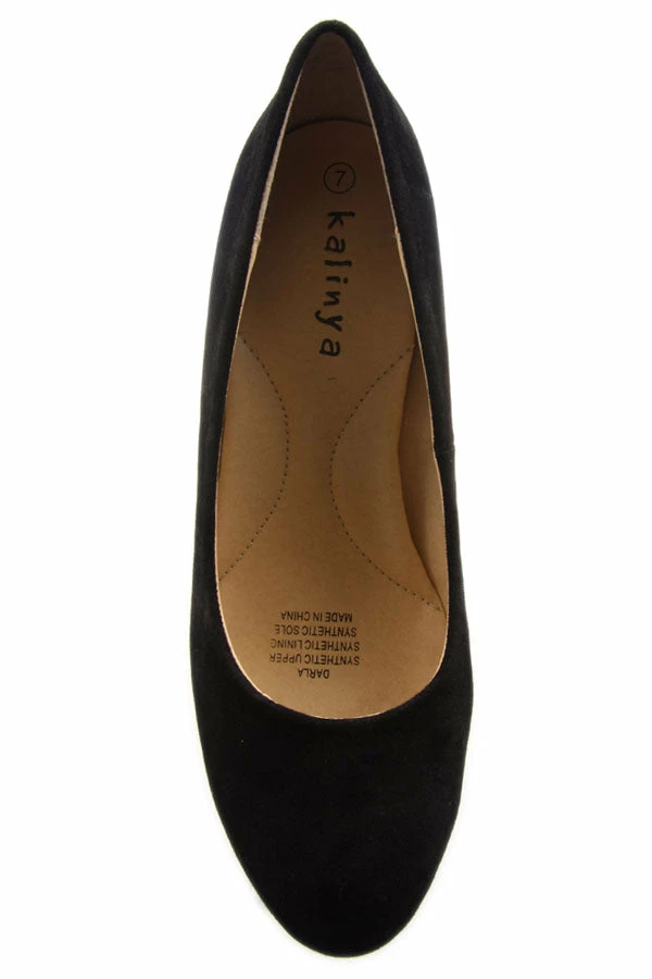 Darla by Kalinya is a slip on microsuede wedge featuring a cushioned insole and almond shaped toe.