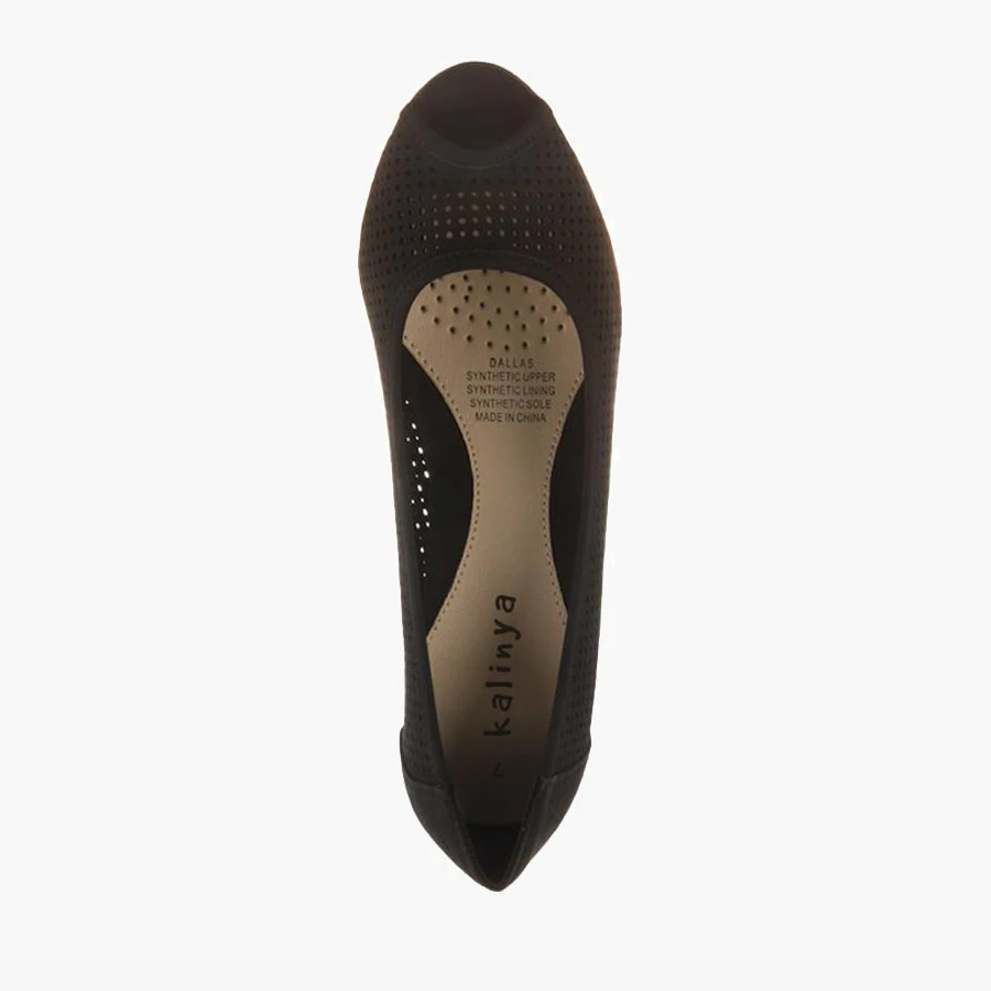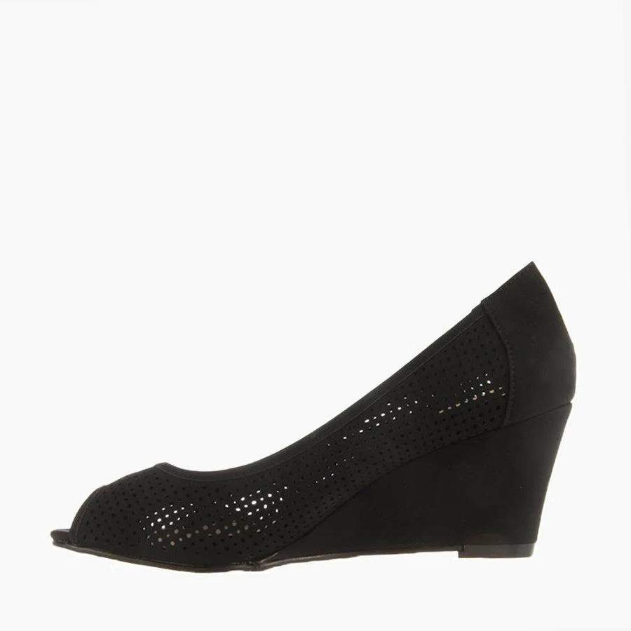 Dallas by Kalinya is a peep toe wedge featuring a laser cut perforated upper.