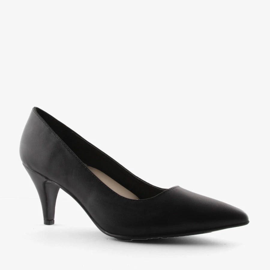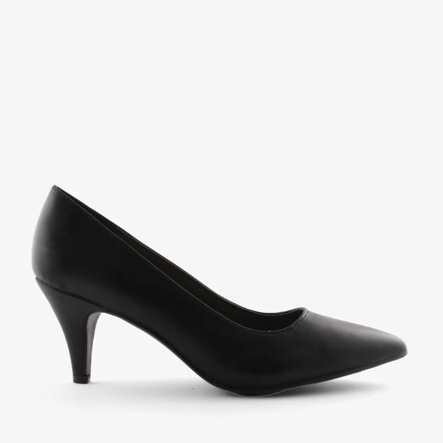 Abella Black by Kalinya is a women’s basic pump featuring a pointed toe, smooth upper and cushioned insole.