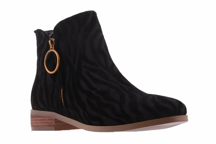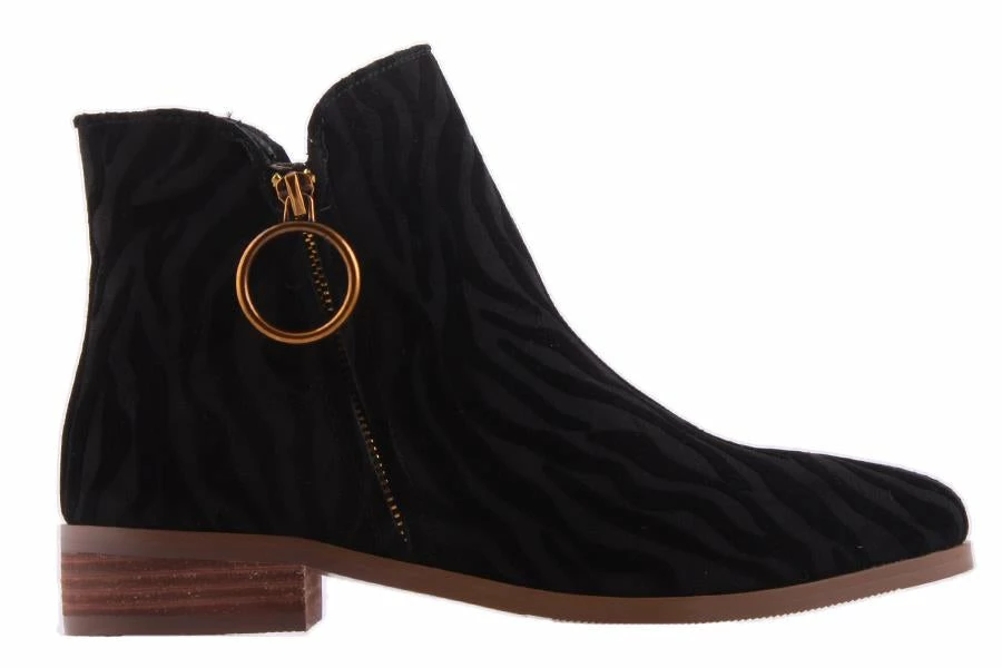 Fuel by Ko Fashion is a women’s ankle boot featuring an animal print upper embellished with zipper trim and a large statement pull.